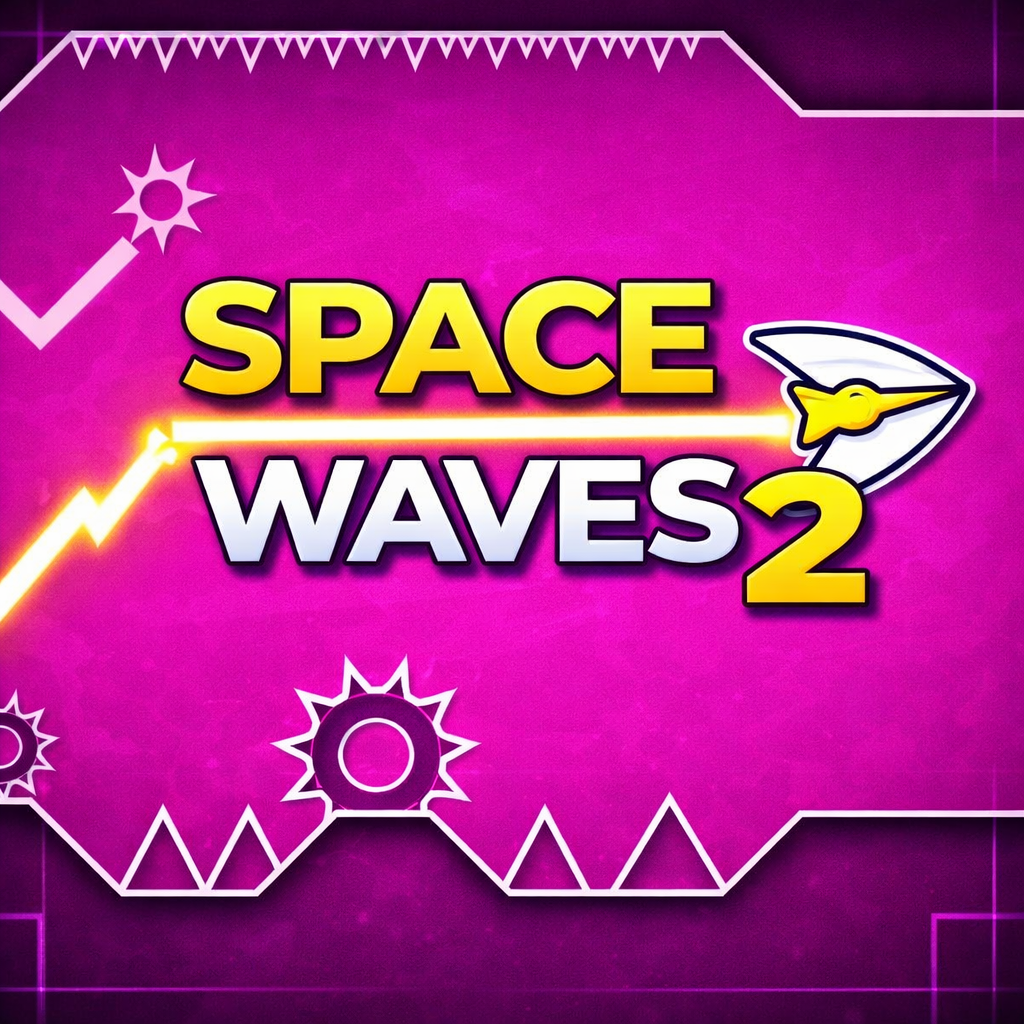 In Space Waves 2, players guide an arrow-like wave that constantly moves forward through narrow corridors filled with spikes, gears, and sharp turns. Movement is controlled by holding or releasing input to create a zigzag motion. Each level requires precise timing and smooth control, as even a small mistake results in an instant restart.